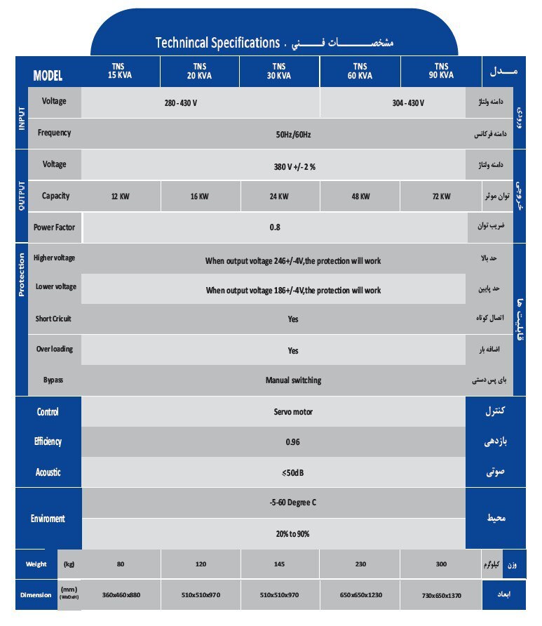 مشخصات فنی استابلایزر آلجا TNS 90KVA :