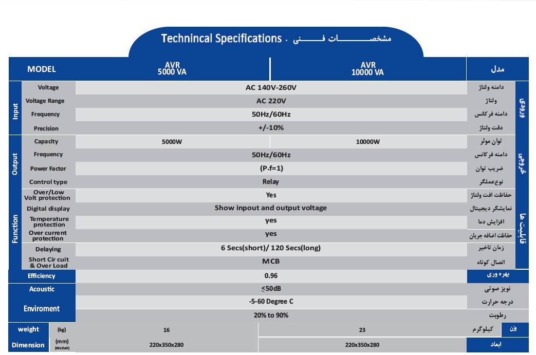 استابلایزر رله ای تک فاز آلجا مدل AVR 10000